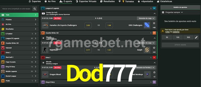 A aposta Dod777 oferece aos jogadores a experiência mais conveniente de apostas em eSports!